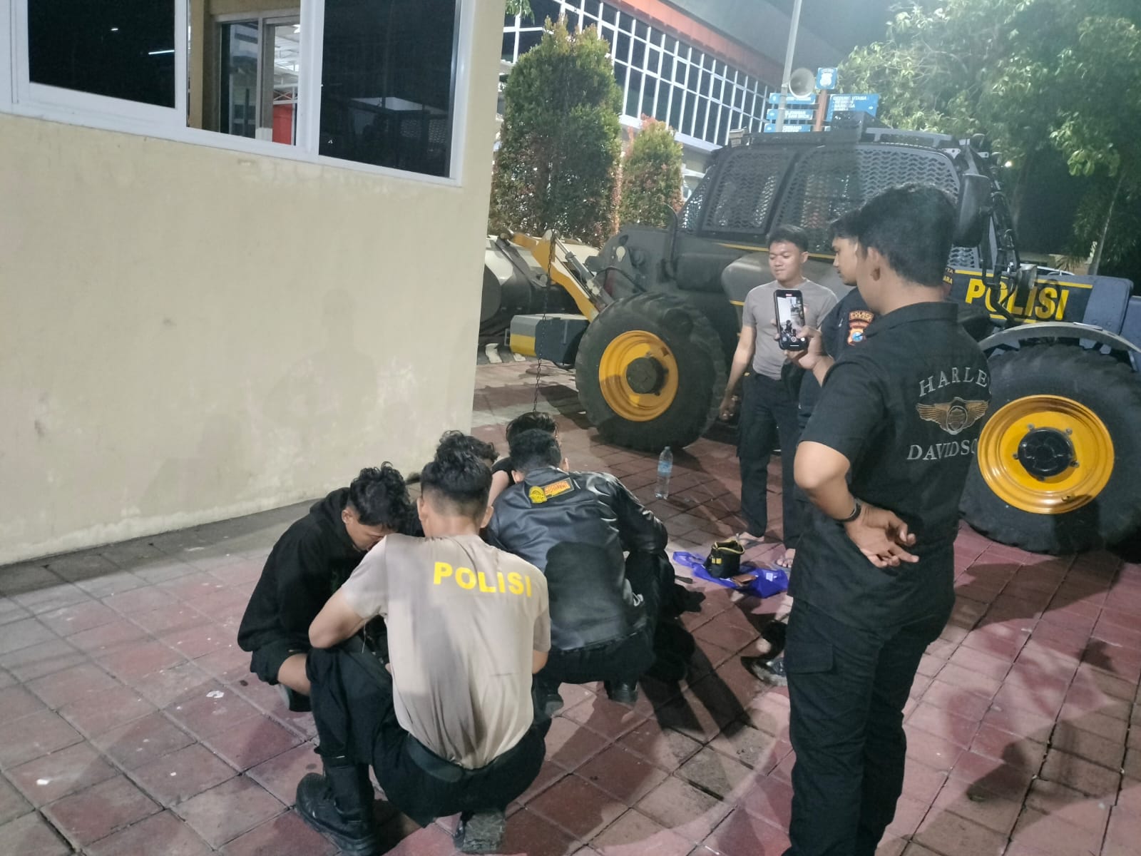 Ketika melintas di lokasi, petugas mendapati Tiga pemuda berdiri mencurigakan di depan sebuah truk dengan satu unit sepeda motor di dekat mereka.