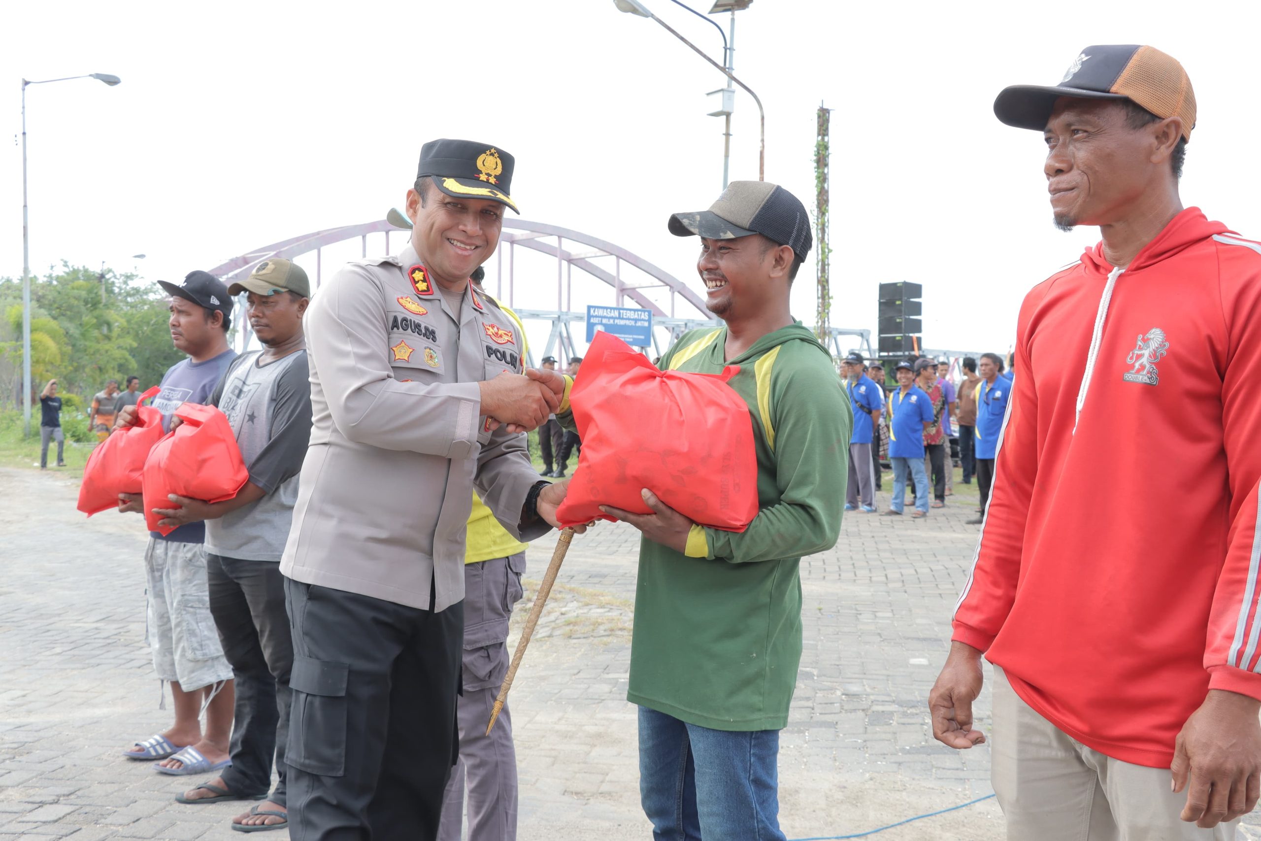 Usai pelaksanaan apel, kegiatan dilanjutkan dengan pemberian sarana kontak berupa sembako dan tali asih oleh Kapolres Lamongan kepada perwakilan nelayan sebagai bentuk kepedulian dan dukungan kepada masyarakat pesisir.